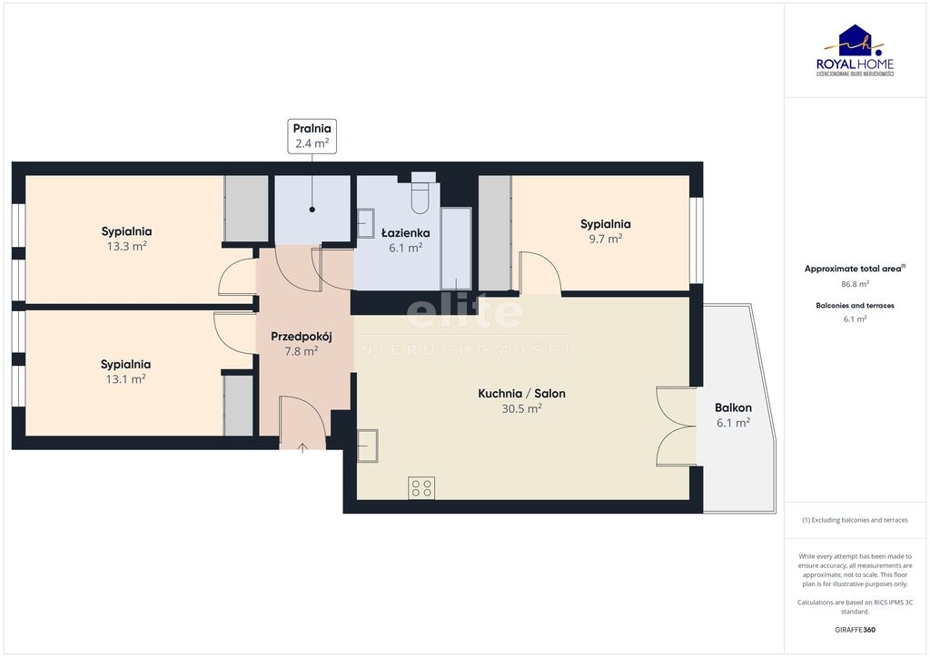 * Trzy osobne sypialnie gwarantujące komfortowe warunki do odpoczynku.