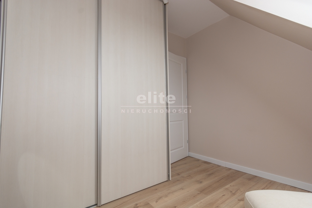 - duży pokój ze skosami o powierzchni 32m2 wyposażony w zabudowę skosów.