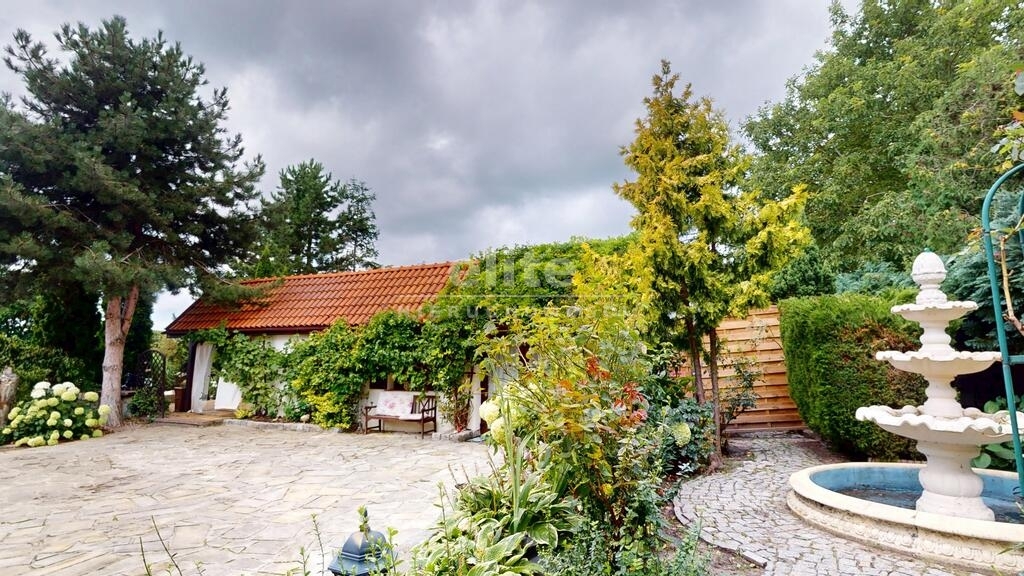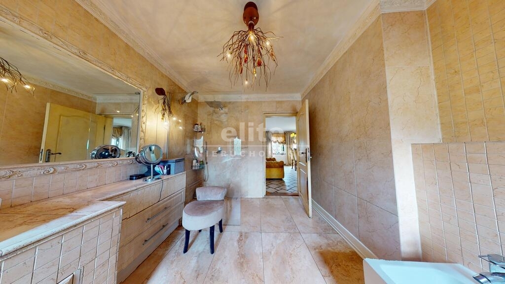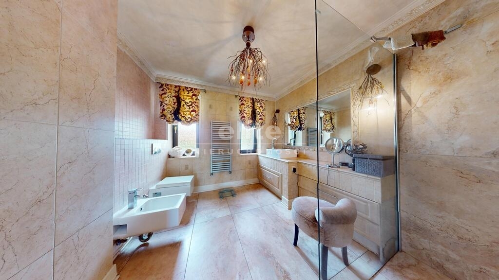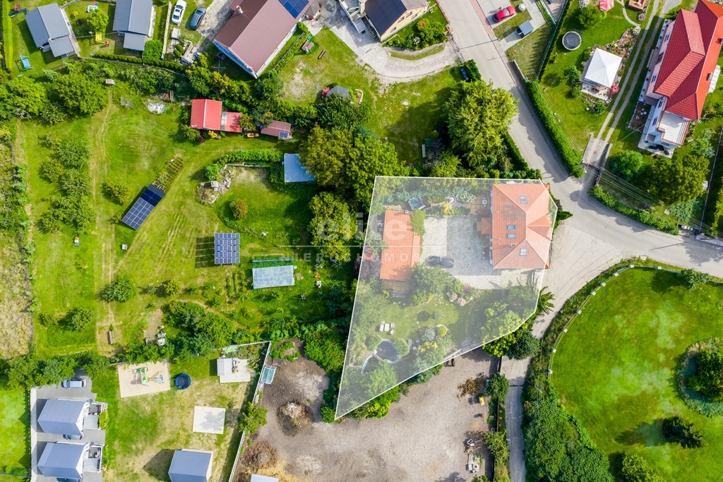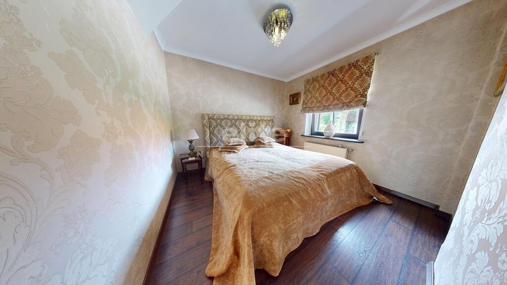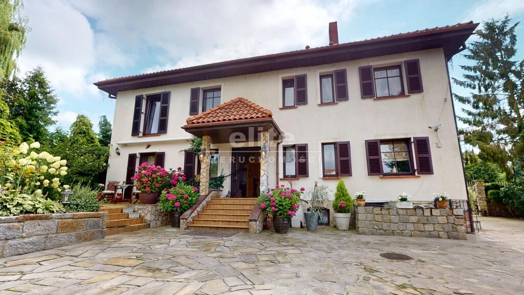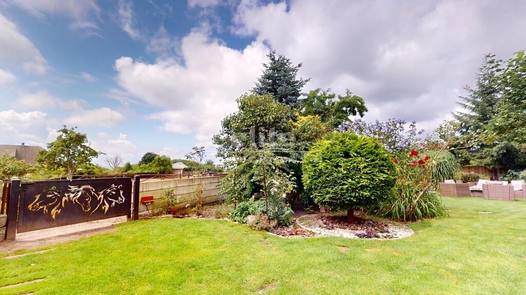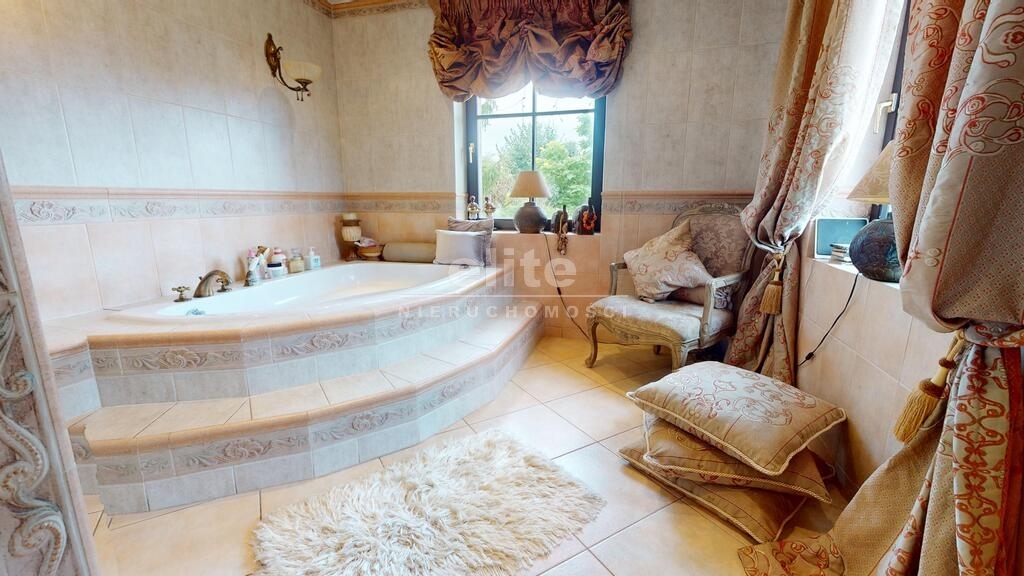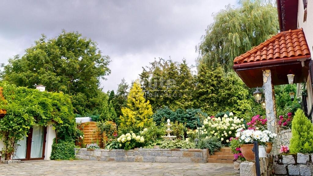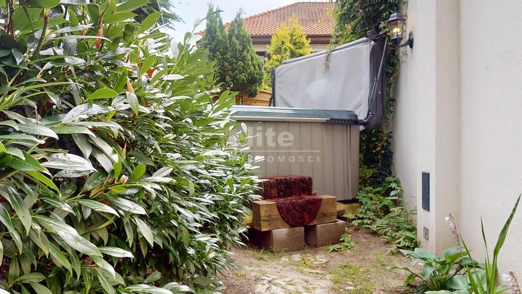 Dom otoczony jest przepięknym ogrodem, liczne nasadzenia, krzewy, oczko wodne, w pełni zautomatyzowany system nawadniania. Na terenie posesji znajduje się również domek gościnny (salon z aneksem kuchennym plus dwie sypialnie, łazienka z wc), sauna i jacuzzi. Standard pomieszczeń - foto.