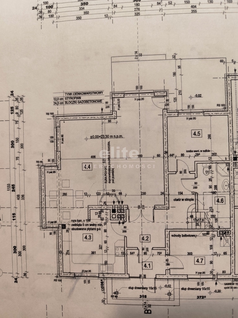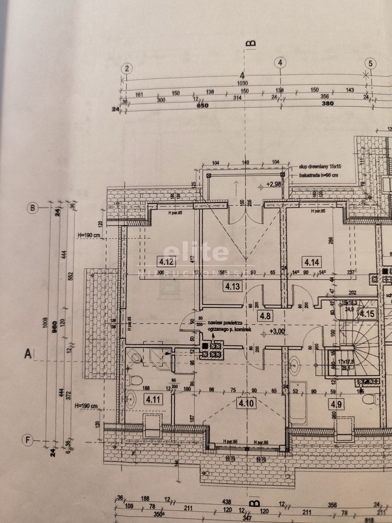 PIĘTRO 77,3 m2 użytkowej/ok. 90 m2 całkowitej + skosy korytarz + schody (13,3 m2), sypialnia 1 (11,4 m2), sypialnia 2 z balkonem (12,2 m2), sypialnia 3 (15,4 m2), sypialnia 4 (14 m2) + łazienka 1 (4,7 m2), łazienka 2 (6,3 m2), strych ok 40 m2 z oknem i 2 okienkami strychowymi.