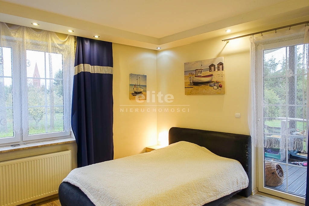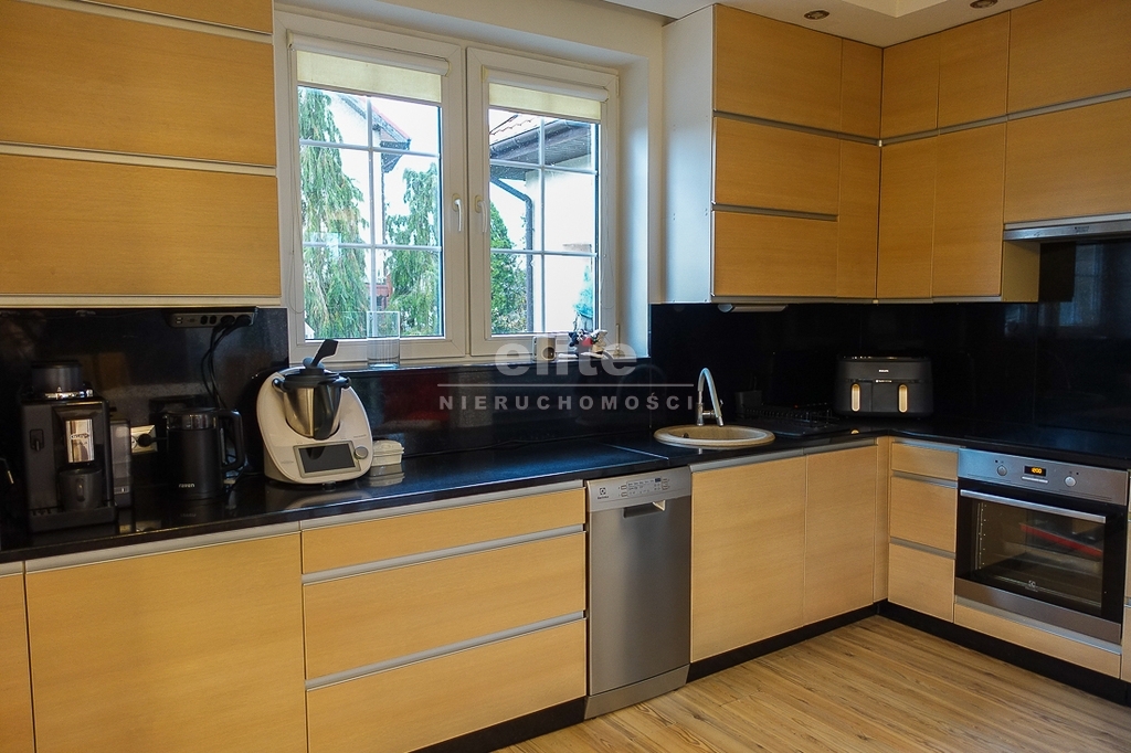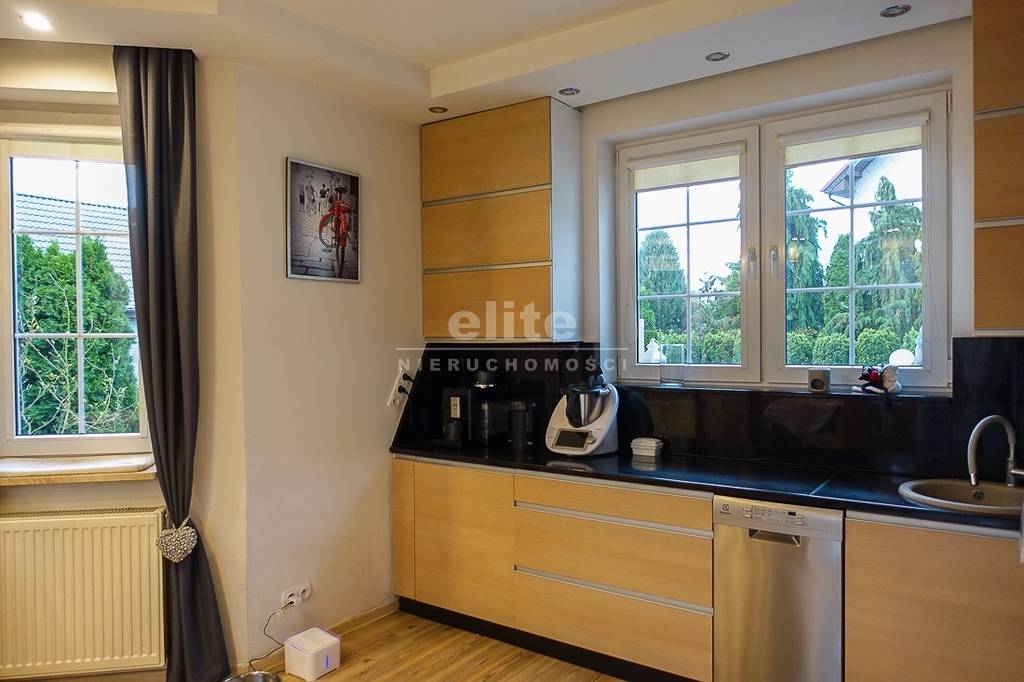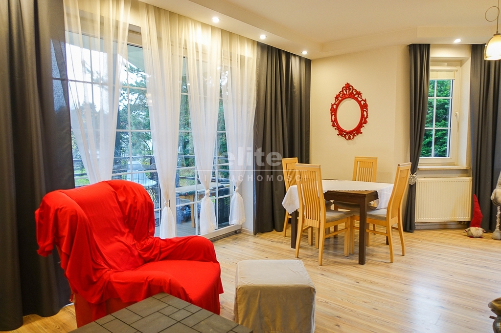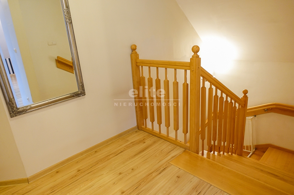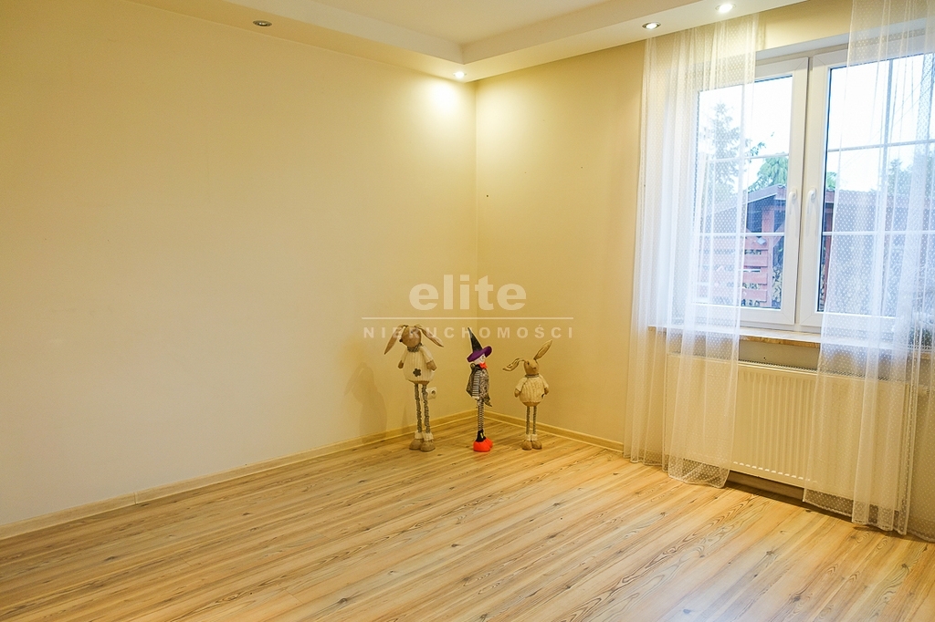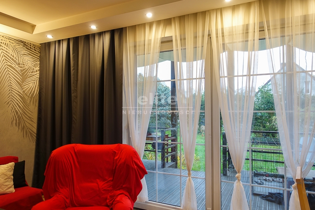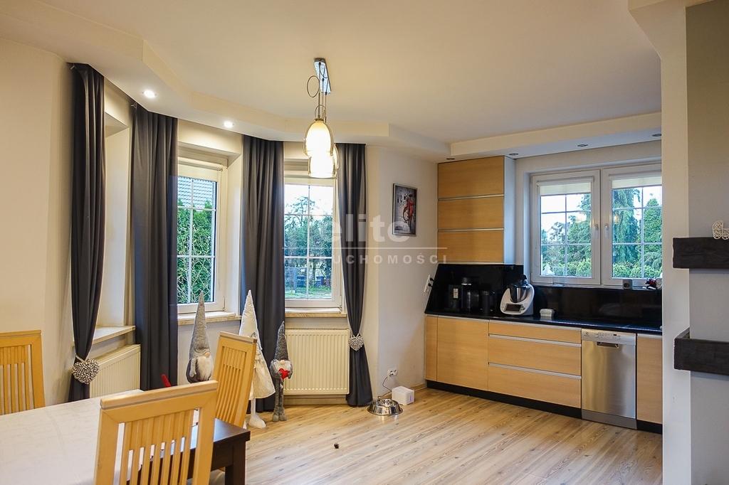 PARTER: salon 24 m2 z wyjściem na taras drewniany o pow. ok. 15 m2 i dalej do pięknie utrzymanego ogrodu z drzewami i krzewami oddzielającymi ogród od ulicy i sąsiednich budynków. Salon otwarty na aneks kuchenny o powierzchni 6 m2 z nowoczesną zabudową i urządzeniami AGD dodatkowo kominek z płaszczem wodnym. 2 pokoje 14,4 m2 i 15,3 m2. Hall 5,39 m2, łazienka 5,12 m2, klatka schodowa 5 m2, sień 3,69 m2. W łazience wanna i toaleta z umywalką. Ogrzewanie elektryczne i kominkowe.