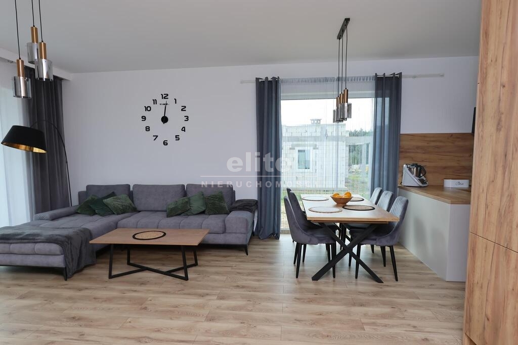 - salon (z wyjściem na taras) oraz otwarta kuchnia,