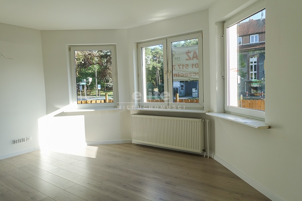 Ground floor of a German villa with a total area of 101.25 m2, 4 rooms, separate kitchen and bathroom, after major renovation located in Dąbie in Szczecin. The apartment also includes a garage, part of the garden and basements and part of the attic. Share 55/100 in the common parts of the building. The plot for the entire property is 647 m2. On the other hand, the ground floor includes 324 m2 of plot. A separate garden is available. RENT-FREE. DESCRIPTION OF THE HOUSE: the building has undergone a major renovation. A new elevation, new roof, all installations (electrical, heating and water and sewage) have been replaced. DESCRIPTION OF THE APARTMENT: The apartment has undergone a general renovation. New radiators. New plasters, smoothing. New approaches to the water installation have been made in the kitchen and bathroom. New PVC windows. Anti-burglary entrance doors, white internal joinery, new. New panels on the floors, except for the kitchen and bathroom where there is a screed. Inside, the walls are made of smooth, painted white, new floors and doors both internal and external. 4 rooms 28 m2, 18 m2, 16 m2, 10 m2, kitchen approx. 7.5 m2, bathroom approx. 4 m2. From the room with a bay window, entrance to two smaller rooms with sliding doors, and a large room separately. From the building, exit to the garden on the south-west side. From the basement corridor, entrance to the garage under the building, exit through a gate opening to the driveway. Heating and hot water from a new gas furnace. In the building, two independent apartments, one on the ground floor, which is the subject of sale, the other on the first floor. SURROUNDINGS: Access by asphalt road. Access to public transport, shops and services.