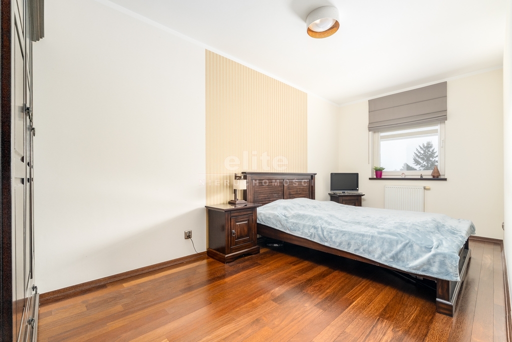 - Okna i zabezpieczenia: Wysokiej klasy okna drewniane, wyposażone w elektrycznie sterowane żaluzje antywłamaniowe, zapewniające pełną prywatność i bezpieczeństwo.
