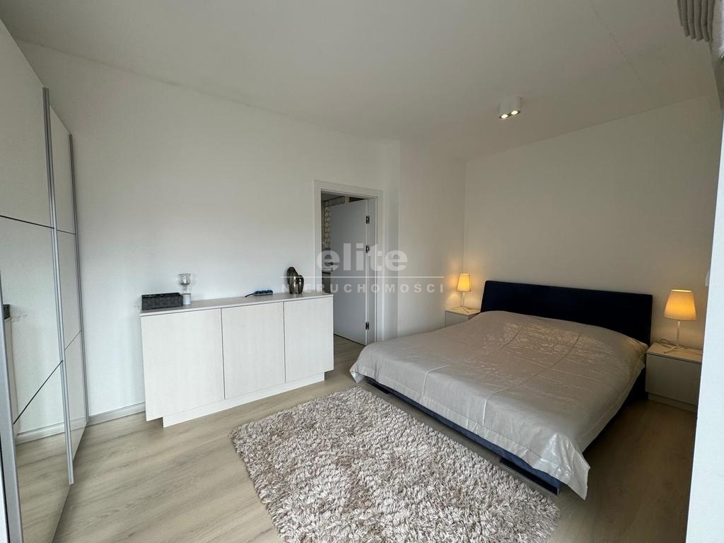 Apartament urządzony w nowoczesnym stylu. W kuchni piekarnik oraz ekspres do kawy firmy Siemens w zabudowie meblowej.