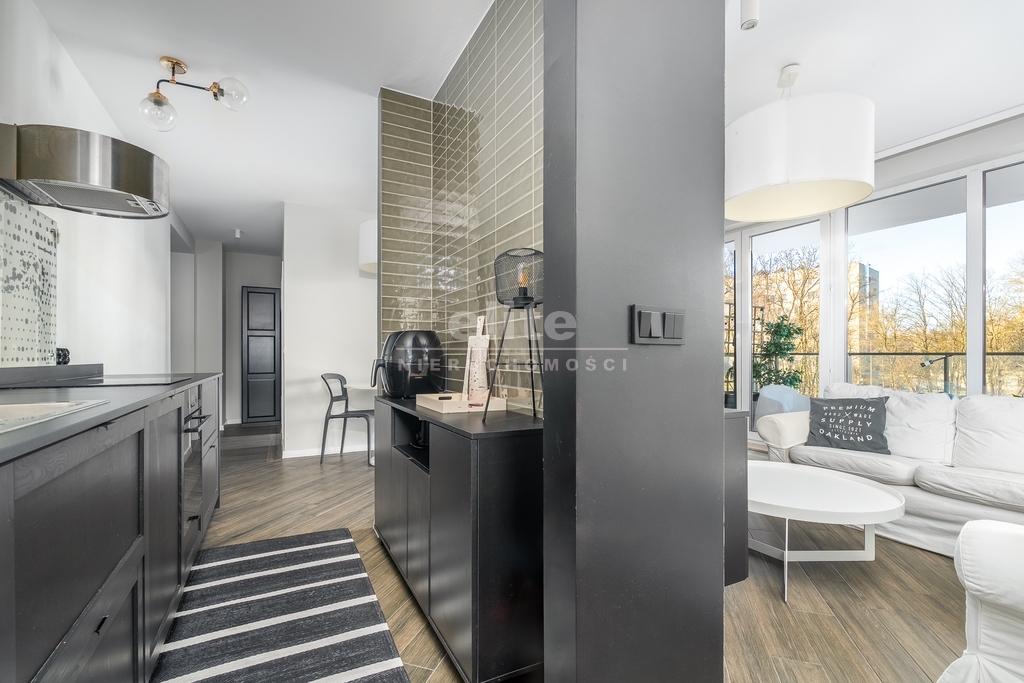 Mieszkanie wykończone materiałami dobrej klasy, zaprojektowane w sposób funkcjonalny i ponadczasowy. Duże przeszklenia gwarantują doskonałe doświetlenie wnętrz przez cały dzień.