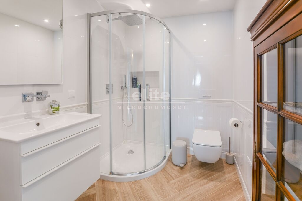 Apartament przeszedł kompleksowy remont w 2022 roku i został wykończony z dbałością o każdy detal – z użyciem naturalnych materiałów, klasycznych kolorów i szlachetnego drewna.
