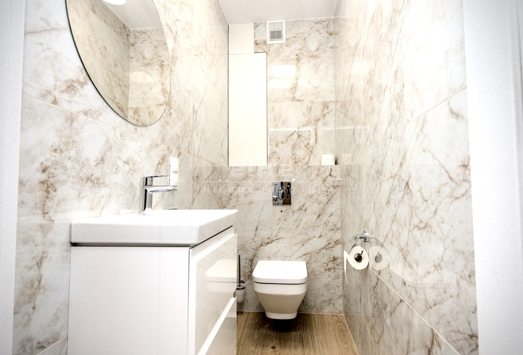 Łazienka z WC: Nowoczesna, zaprojektowana z myślą o maksymalnej wygodzie, przystosowana także dla osób niepełnosprawnych.