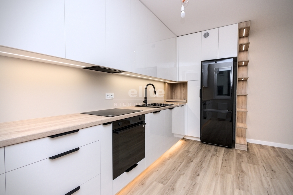 W lokalu położono panele, wygładzono oraz pomalowano ściany, zamontowano drzwi wewnętrzne oraz wyposażono łazienkę i kuchnię.