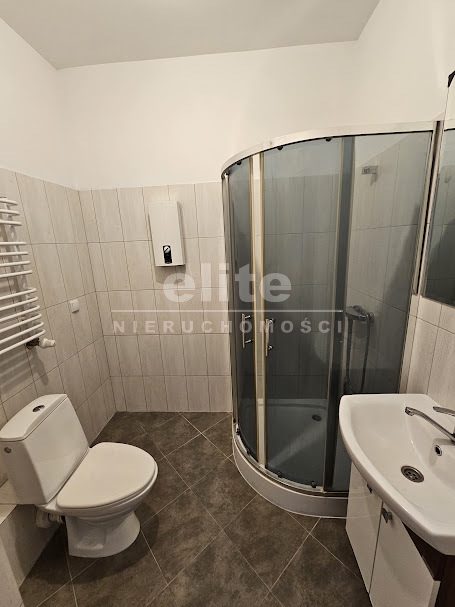 Ładna nowoczesna łazienka w glazurze i terakocie z kabiną prysznicową.