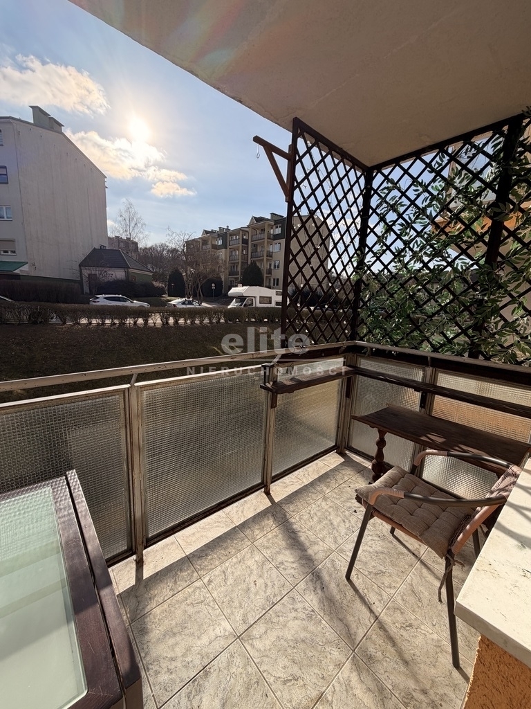 Widok, który relaksuje: Z balkonu roztacza się kojący widok bezpośrednio na ścianę lasu, kameralnego osiedla i zieloną naturę.