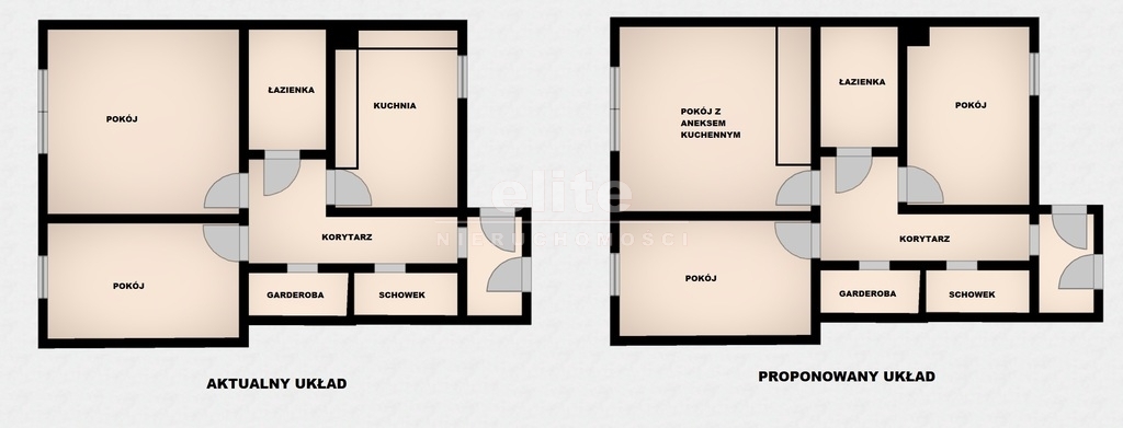 Istnieje możliwość zrobienia 3-pokoi (propozycja na załączonym rzucie).