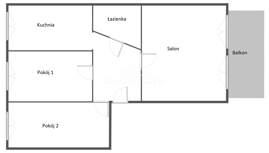 Dwa pokoje o powierzchni około 12m2 oraz około 9m2, kuchnia o powierzchni około 8m2.