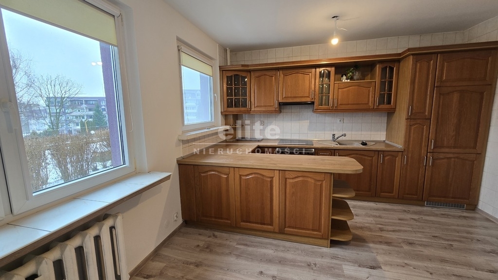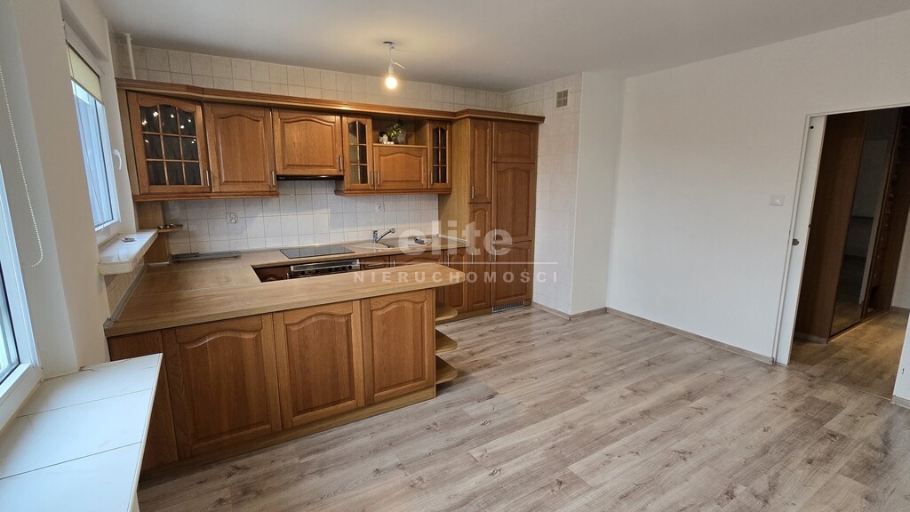 - Pokój z aneksem kuchennym: Kuchnia z oknem, umeblowana i wyposażona w sprzęt AGD.