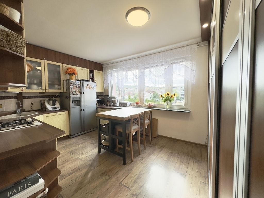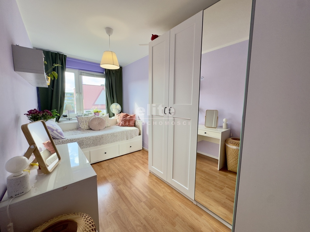 Mieszkanie jest w pełni rozkładowe. Niezwykłą zaletą jest to, że okna wychodzą na trzy strony świata, dzięki czemu wnętrza są bardzo jasne i dobrze doświetlone. W części przedpokoju, kuchni oraz w łazience znajdują się pojemne szafy.