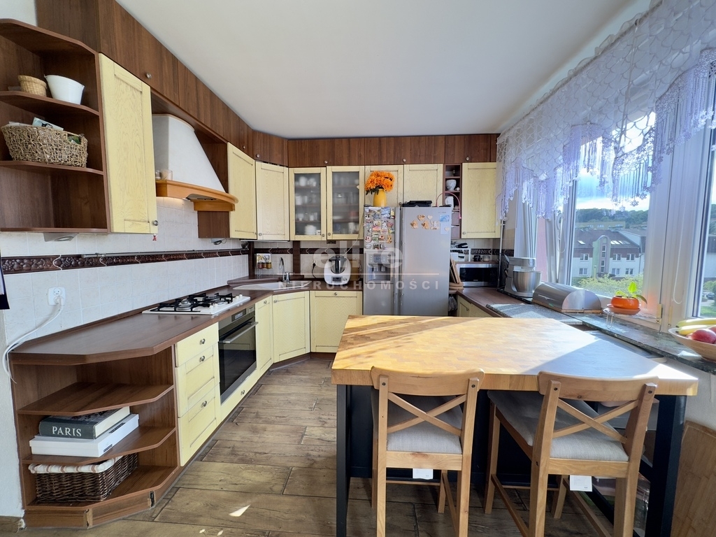 * oddzielna kuchnia z miejscem na duży stół jadalniany, wyposażona w zabudowę kuchenną, lodówkę, zmywarkę, płytę gazową, okap i mikrofalówkę,