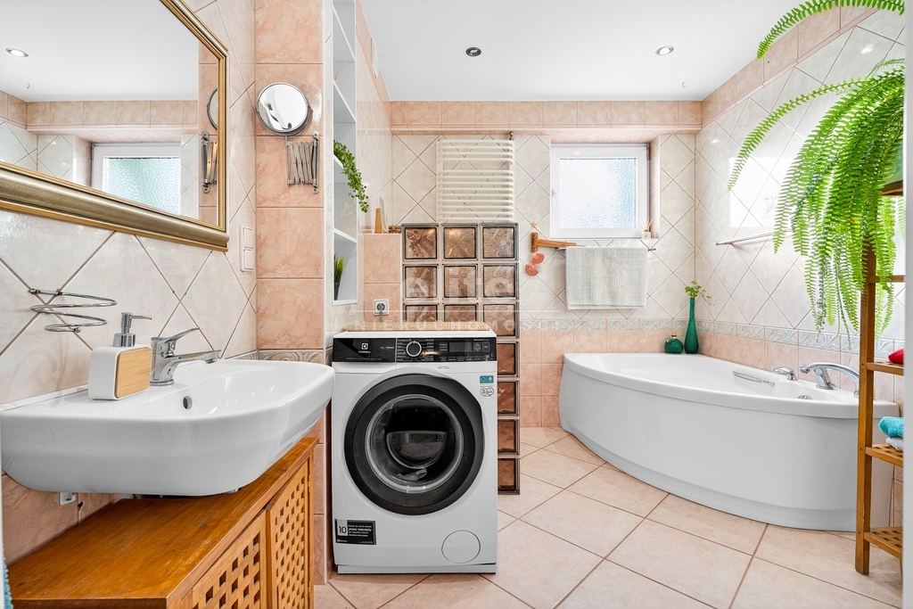 - łazienka z wanną, WC i kabiną prysznicową: 7,5 m²
