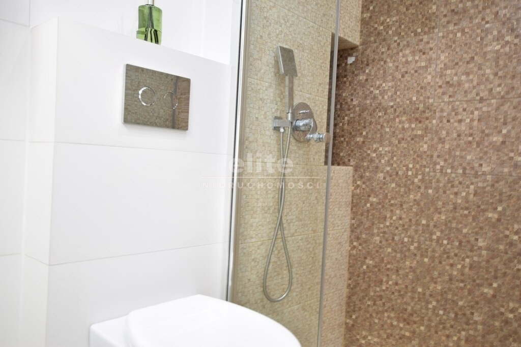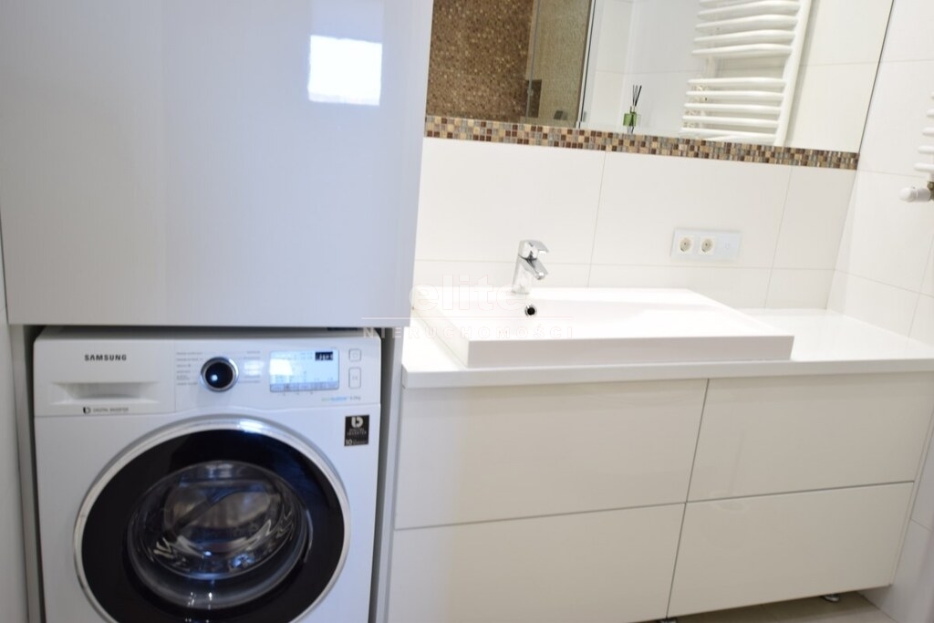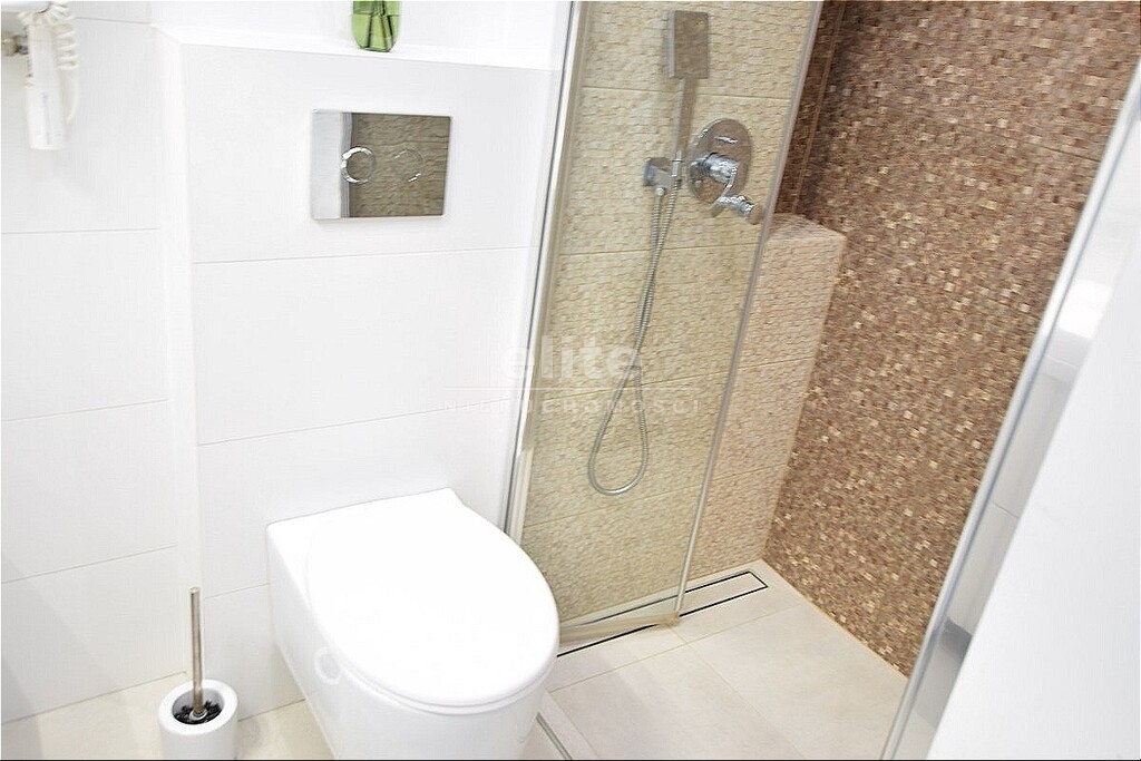 Mieszkanie o funkcjonalnym układzie wnętrza. Składa się z przestronnego salonu z wyjściem na duży słoneczny balkon. Ściany gładzone malowane, na podłodze panele. Sypialnia ustawna z miejscem na łóżko i szafę. Jasna kuchnia oddzielna. Nowoczesna zabudowa meblowa na wymiar ze sprzętem AGD. Na ścianach lacobel na podłodze gres. Piękna łazienka wykończona jasnymi kaflami oraz dekoracyjną mozaiką z meblami na wymiar z kabiną prysznicową z odpływem liniowym razem z WC. Przedpokój z szafą typu komandor.