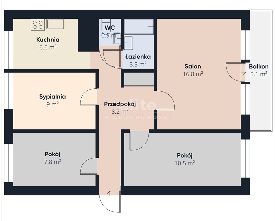 Mieszkanie o pow. 63,8 m2 składa się z: