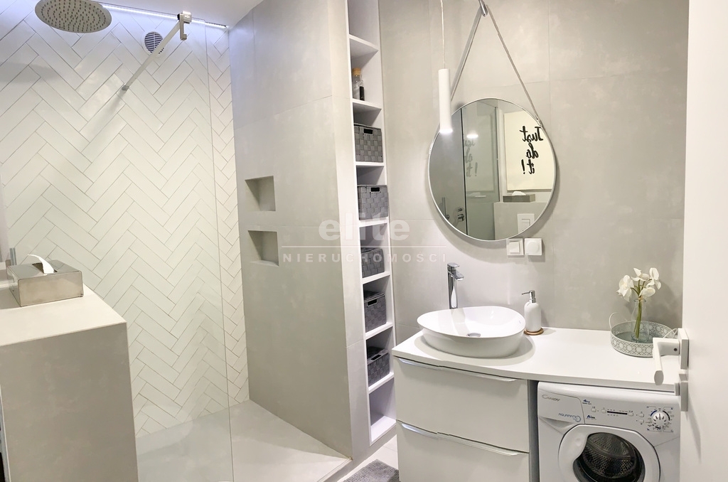 Ogrzewanie podłogowe jest rozprowadzone po całym mieszkaniu.