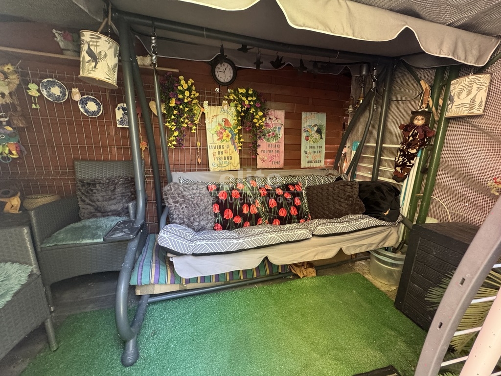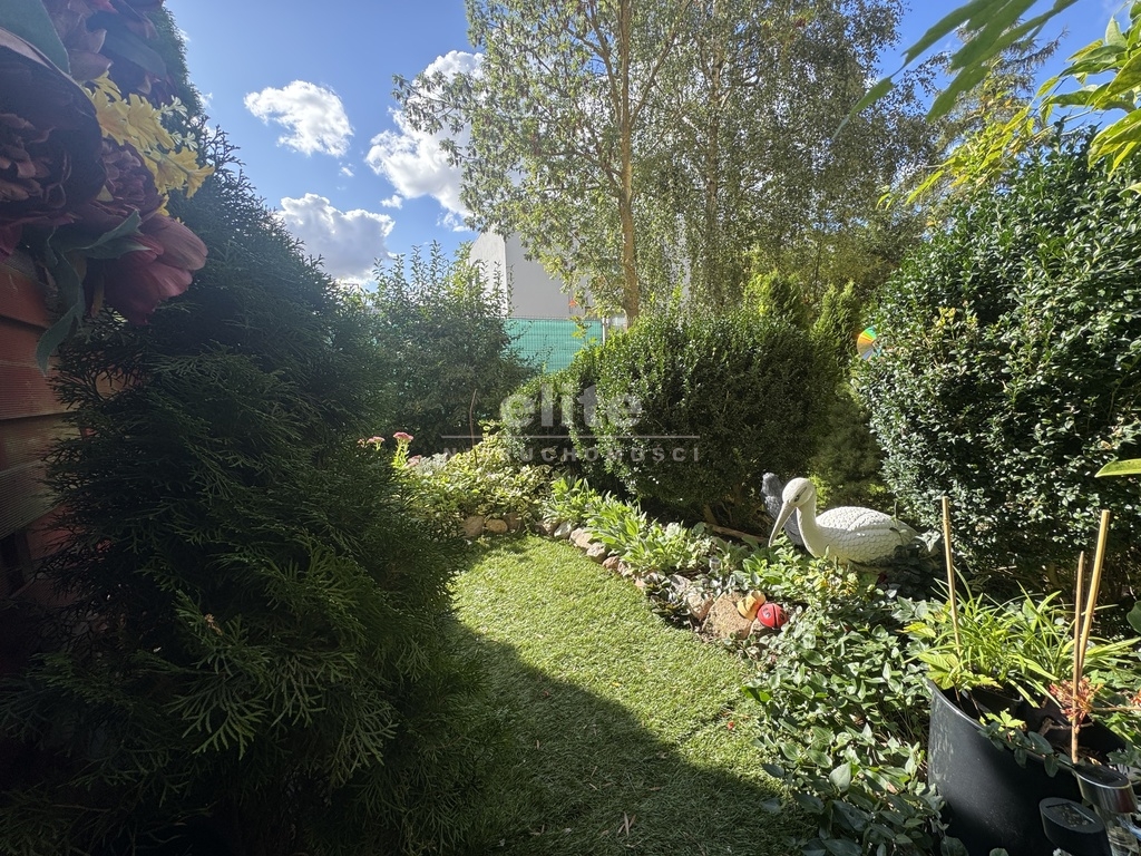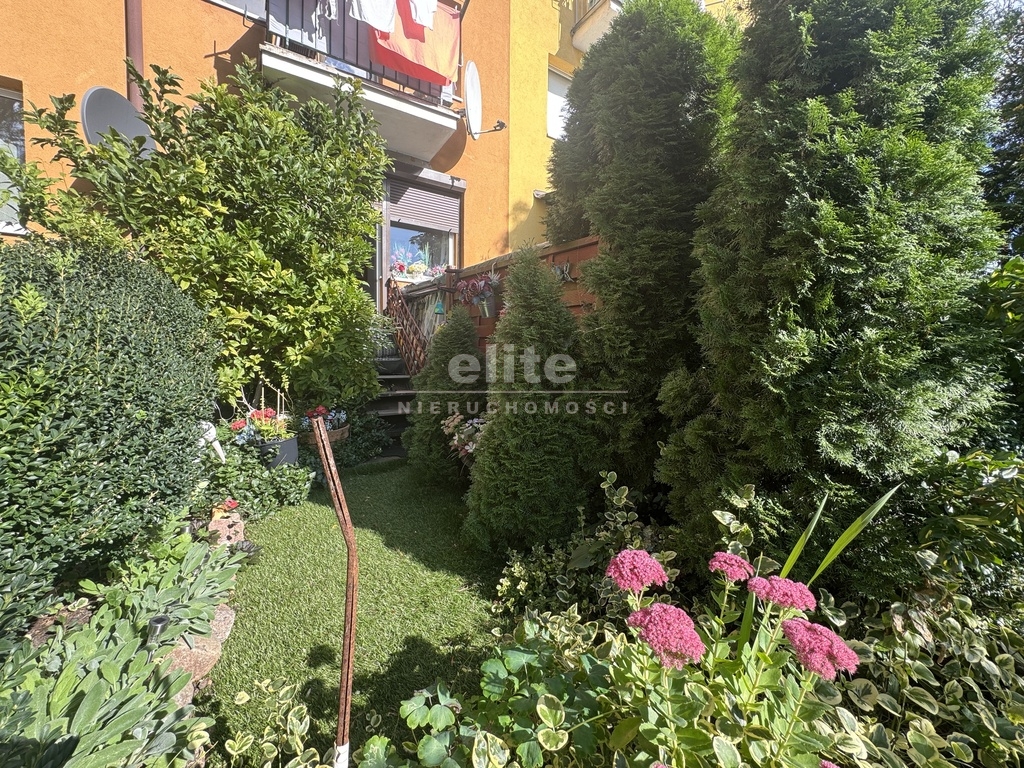 Ładnie zagospodarowany ogródek z bezpośrednim wyjściem z balkonu. W ogrodzie mała altanka z miejscem do odpoczynku.