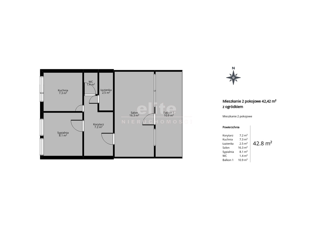 Przestronne mieszkanie 2 pokojowe z balkonem i ogródkiem.