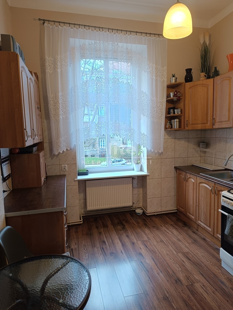 - Oddzielna, jasna kuchnia z oknem, w pełni umeblowana i wygodna w użytkowaniu.