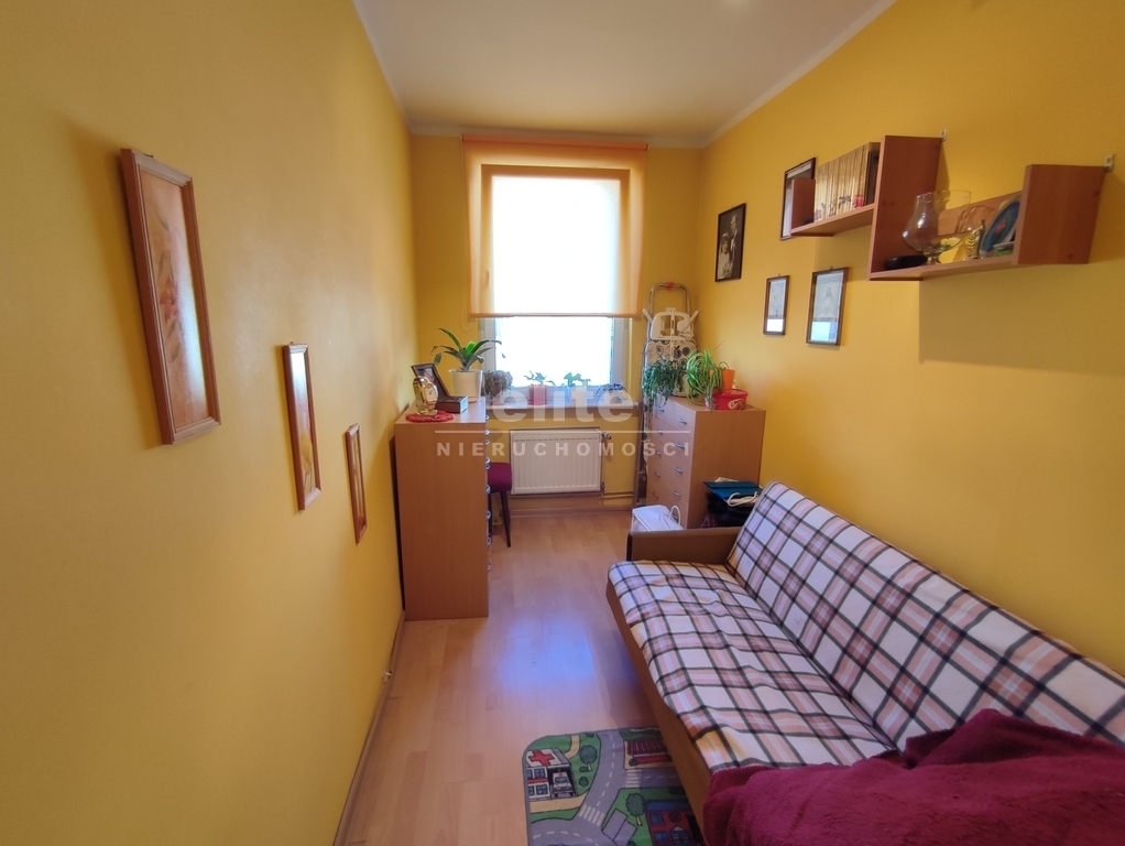 Mieszkanie obecnie składa się z salonu (prawie 19m2), trzech osobnych pokoi (10m2, 8m2, 7m2), osobno kuchni 10m2 z oknem, łazienki z toaletą (również z oknem) oraz dwóch przedpokoi. UWAGA - układ mieszkania częściowo przechodni (najpierw wchodzimy do holu, który ma po lewej stronie łazienkę a na wprost kuchnię i dopiero z kuchni wchodzimy do salonu, z którego znowu przechodzimy do pozostałych pokoi) !!! W 2015 roku w mieszkaniu zostały wymienione wszystkie instalacje (elektryczna, wodno-kanalizacyjna oraz grzewcza - na miedzianą). W pokojach panele na podłodze, ściany gładzone i malowane plus fototapeta na jednej ze ścian w salonie oraz kilka ozdobnych pasków tapety. W kuchni ciemniejsze panele na podłodze plus ozdobne kafelki na ścianie między meblami oraz sprzęt AGD (m.in. lodówka, kuchenka, okap i pralka). W łazience nowsza glazura i terakota plus wanna, umywalka z szafką, toaleta i grzejnik. W pierwszym przedpokoju starsza zabudowa (m.in. szafa) zaś w drugim przedpokoju nowsza, trzyczęściowa szafa typu Komandor. W cenie może pozostać większość umeblowania mieszkania widocznego na zdjęciach.
