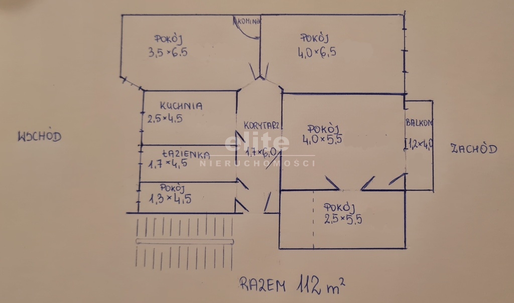 Rozkład mieszkania i wielkości pomieszczeń podane są na rzucie zamieszczonym wśród zdjęć.
