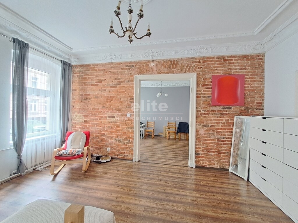 - trzech dużych pokoi, w tym dwa ok. 19 m2 są połączone jednak wygodna komunikacja zapewnia możliwość zmiany na układ rozkładowy,