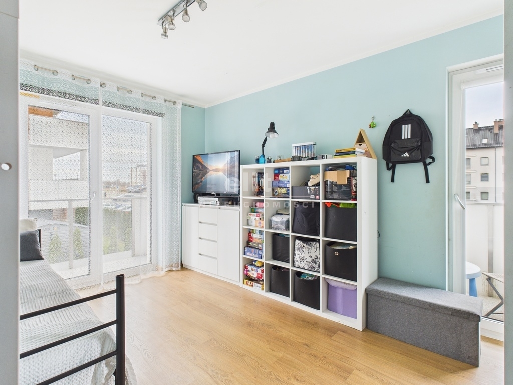 Dużym atutem nieruchomości są dwa balkony, które pozwalają cieszyć się świeżym powietrzem i zapewniają dodatkową przestrzeń do relaksu – idealną na poranną kawę lub odpoczynek po pracy.