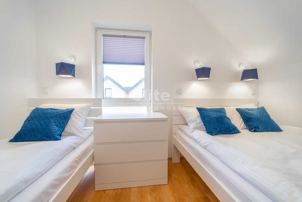Na piętrze znajdują się dwie sypialnie oraz toaleta.