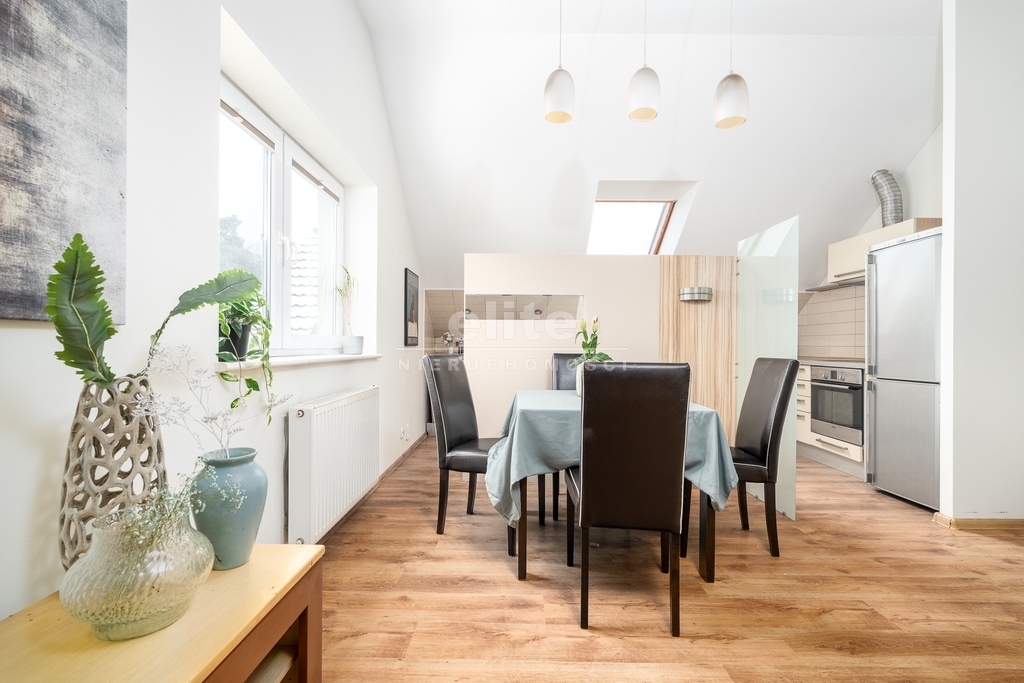 - Widna kuchnia: W pełni wyposażona w sprzęt AGD (zmywarka, piekarnik, lodówka, okap).