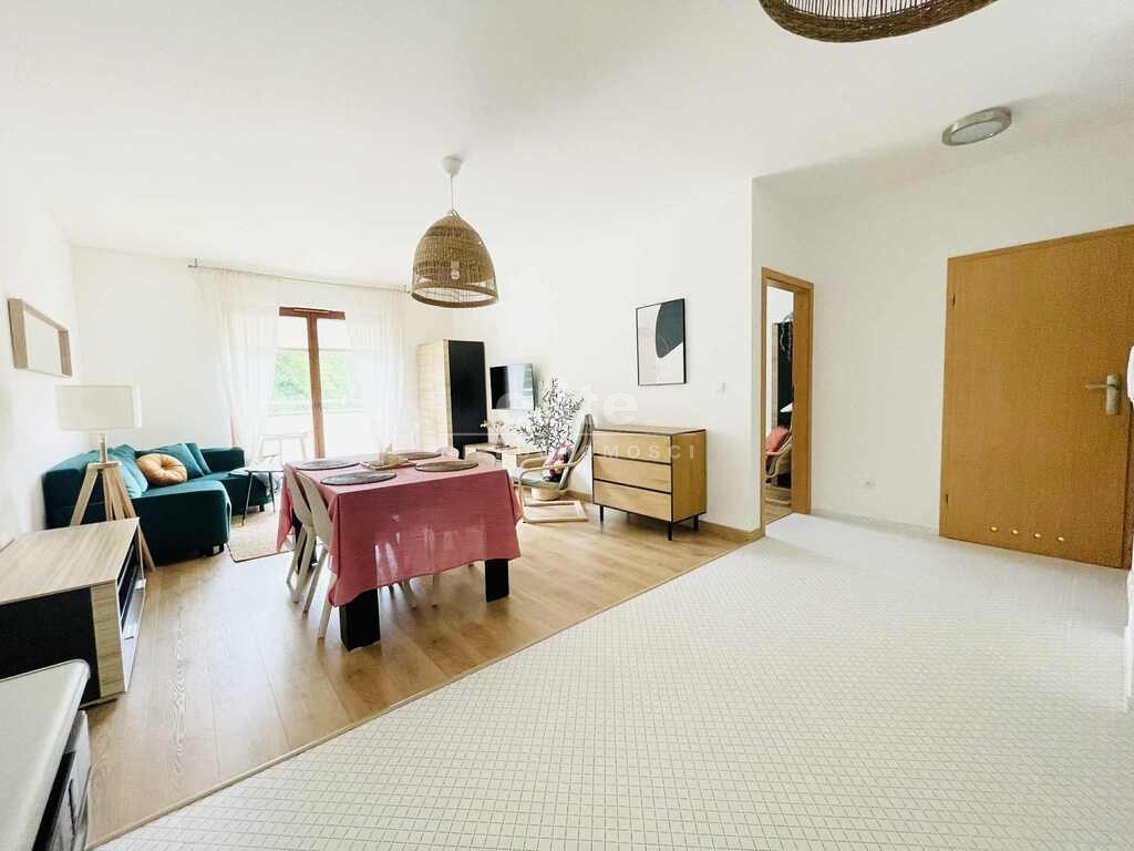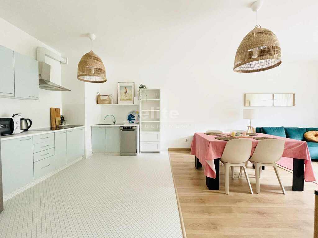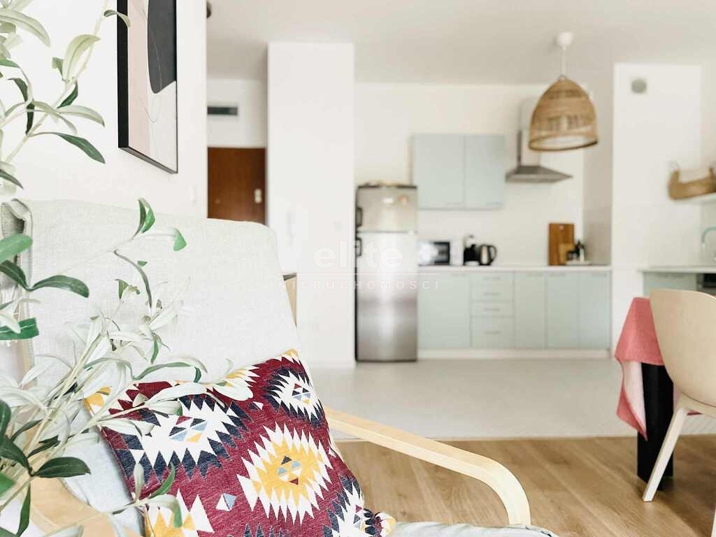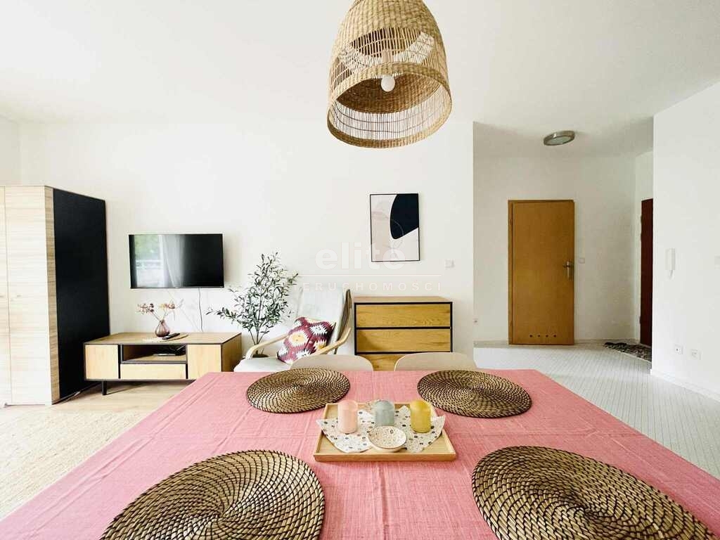 - salonu z aneksem kuchennym: w pełni wyposażony, z nową rozkładaną sofą, stolikiem kawowym, szafą, komodą, stolikiem pod TV oraz stołem z 4 krzesłami; aneks kuchenny wyposażony