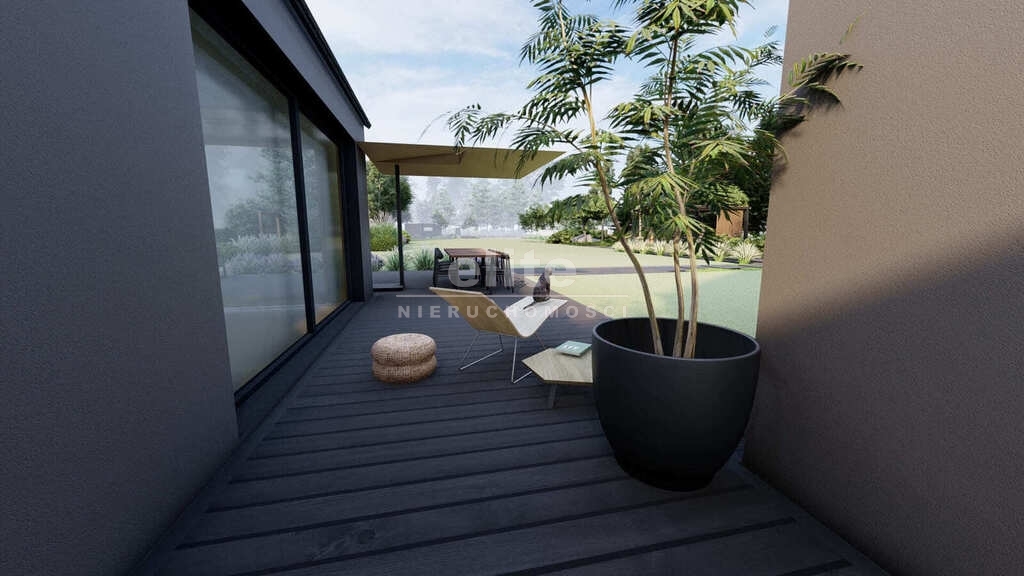 - Taras (80m2): Wykonany z drewna opalanego metodą Shou Sugi Ban.