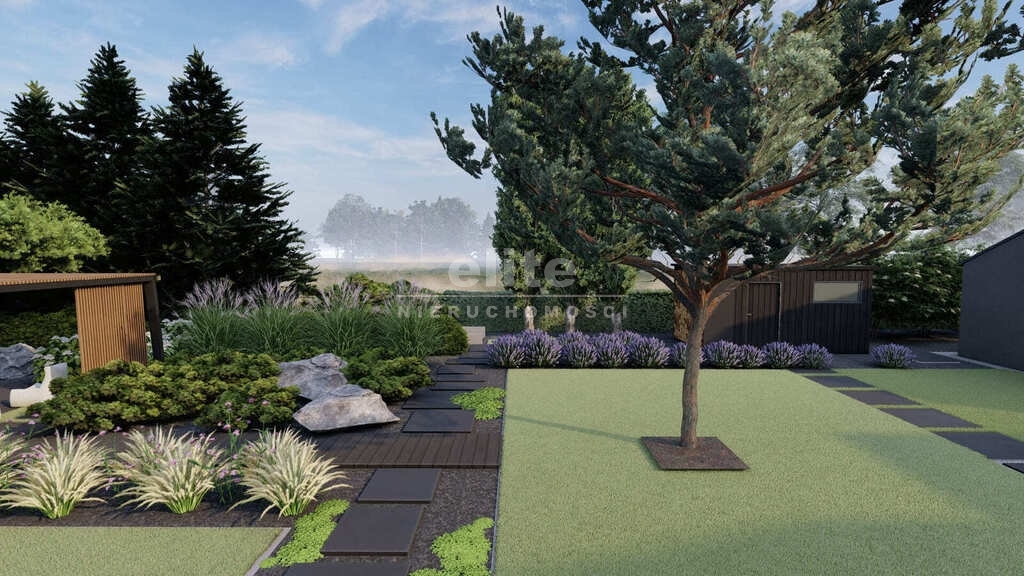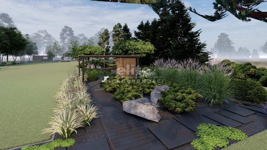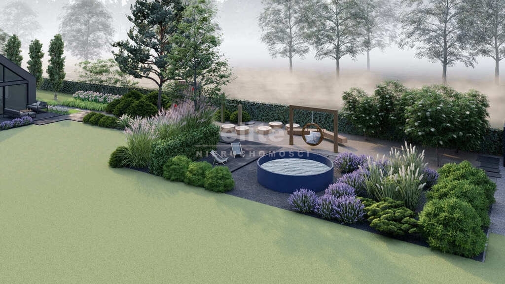 - Działka: Zagospodarowana, z widokiem na ścianę lasu, zapewniająca 100% prywatności.