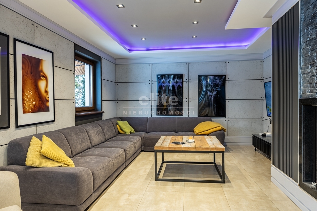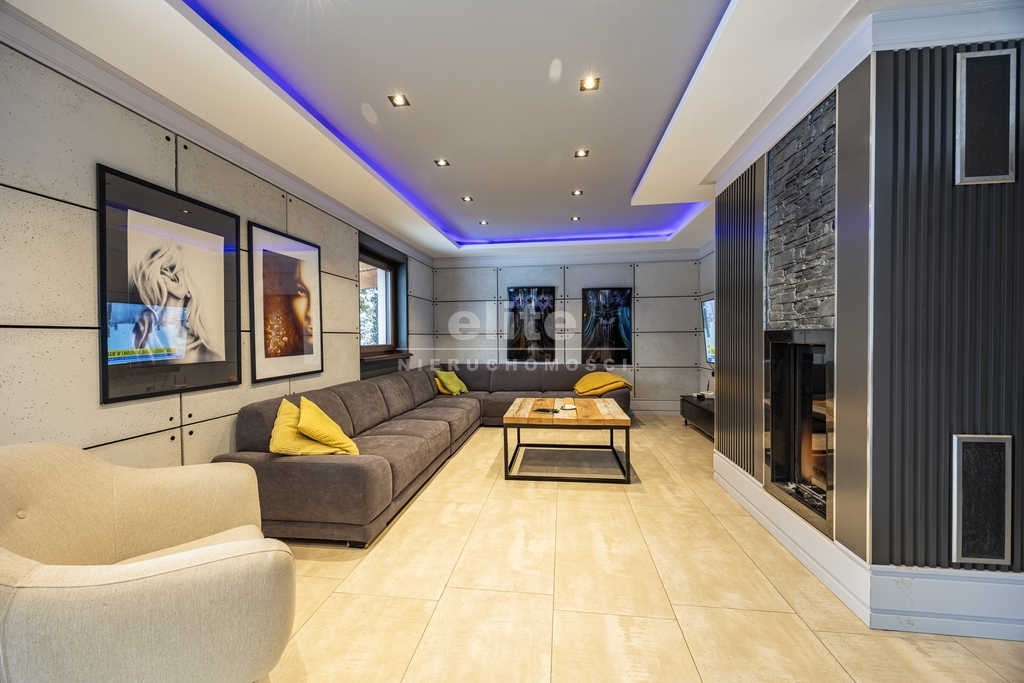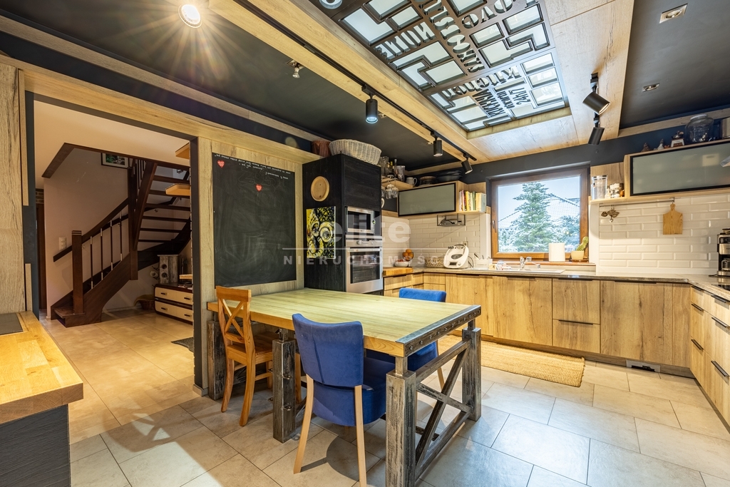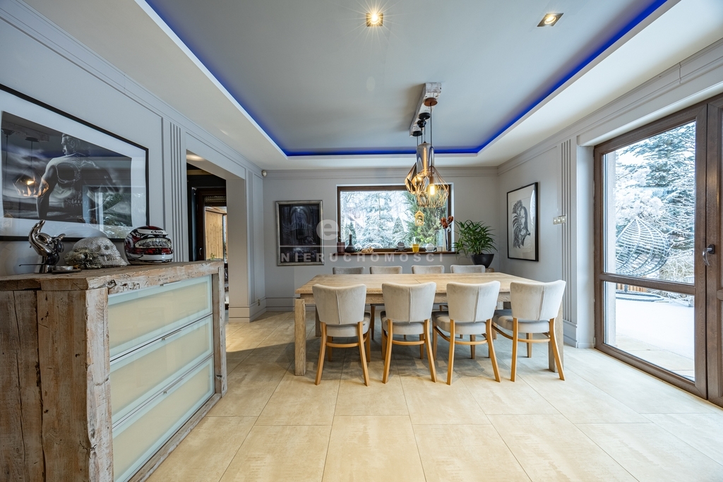 - duży salon, z częścią jadalną, kominkiem i z wyjściem na taras i ogród