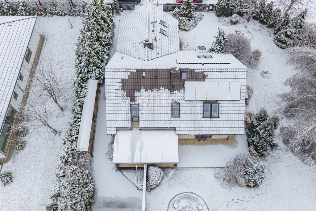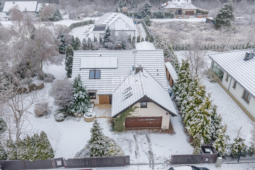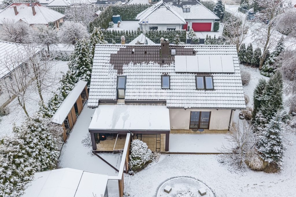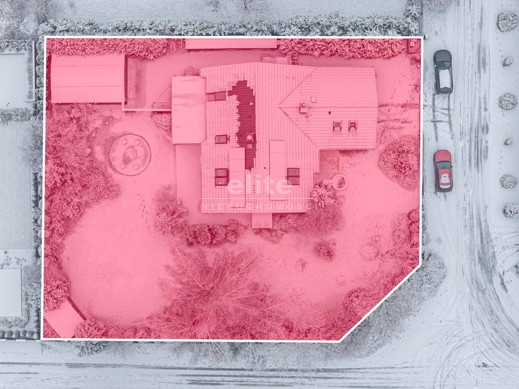 Dom o powierzchni użytkowej ok. 215 m2, w sąsiedztwie lasu i bliskiej odległości od jeziora Miedwie, położony na działce o powierzchni 1209 m2.