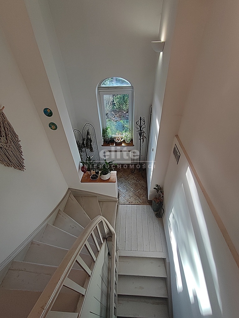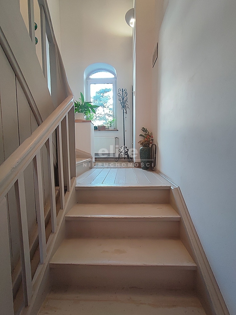 Na górę do części prywatnej gdzie znajdują się 4 sypialnie i pokój kąpielowy poprowadzą nas schody i nietuzinkowy korytarz.