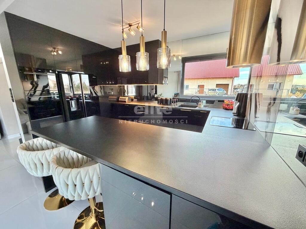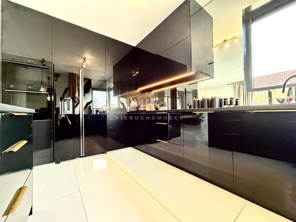 Rozbudowana stolarka wewnętrzna w postaci zabudowy kuchennej, zabudowy szaf w sypialni, garderobie i korytarzu.
