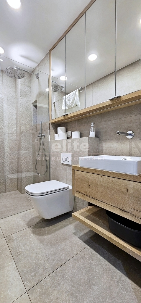 Apartament jest nowocześnie wykończony i wyposażony (, z przestronną łazienką oraz kompletnie wyposażonym i umeblowanym aneksem kuchennym . Ogrzewanie i gorąca woda są z sieci i ich koszty wliczone są w czynszu. Dodatkowym atutem jest klimatyzacja.