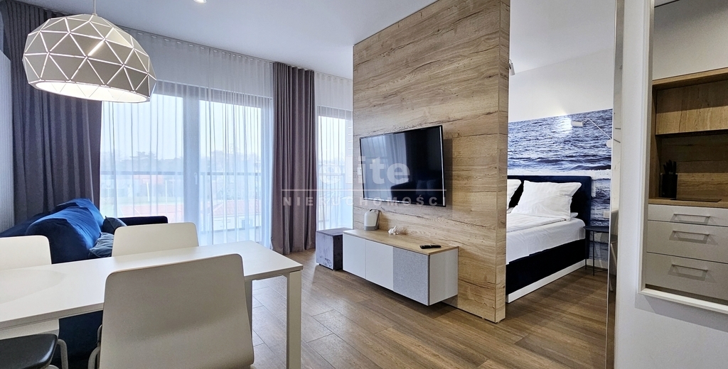 Sprzedam apartament o pow. użytkowej 31,39m2. Apartament usytuowany jest w nowoczesnym, komfortowym apartamentowcu z 2019r z windą zjeżdżającą do poziomu garażu w pierwszej linii zabudowy od morza). Kompleks budynków jest dostępny jedynie dla mieszkańców, ogrodzony i stale monitorowany. Do dyspozycji mieszkańców jest plac zabaw dla dzieci, tereny zielone. Apartament składa się: z eleganckiego salonu z aneksem kuchennym (24,19m2), \z wydzieloną częścią sypialną , oraz łazienki /4,8m2) i przedpokoju (3,41m2). Apartament znajduje się na 1 piętrze budynku, posiada narożny taras o powierzchni 7,80m2 z widokiem na morze oraz miejsce postojowe w hali garażowej w podziemiach budynku w cenie 50000 zl.