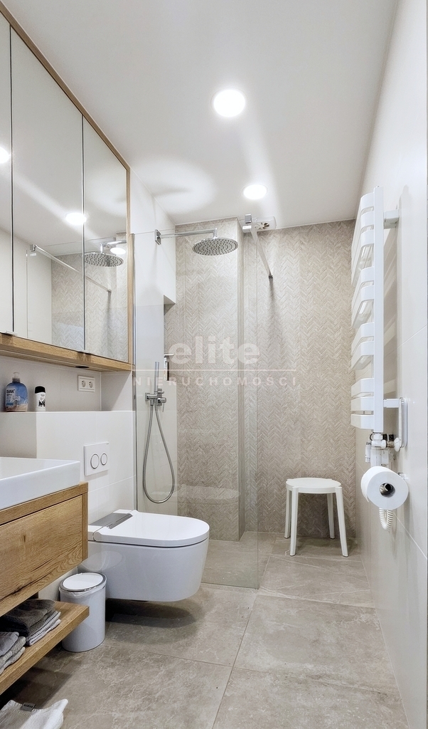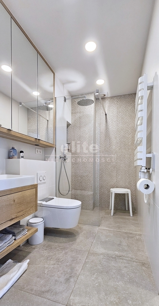 Apartament jest nowocześnie wykończony i wyposażony (, z przestronną łazienką oraz kompletnie wyposażonym i umeblowanym aneksem kuchennym . Ogrzewanie i gorąca woda są z sieci i ich koszty wliczone są w czynszu. Dodatkowym atutem jest klimatyzacja.