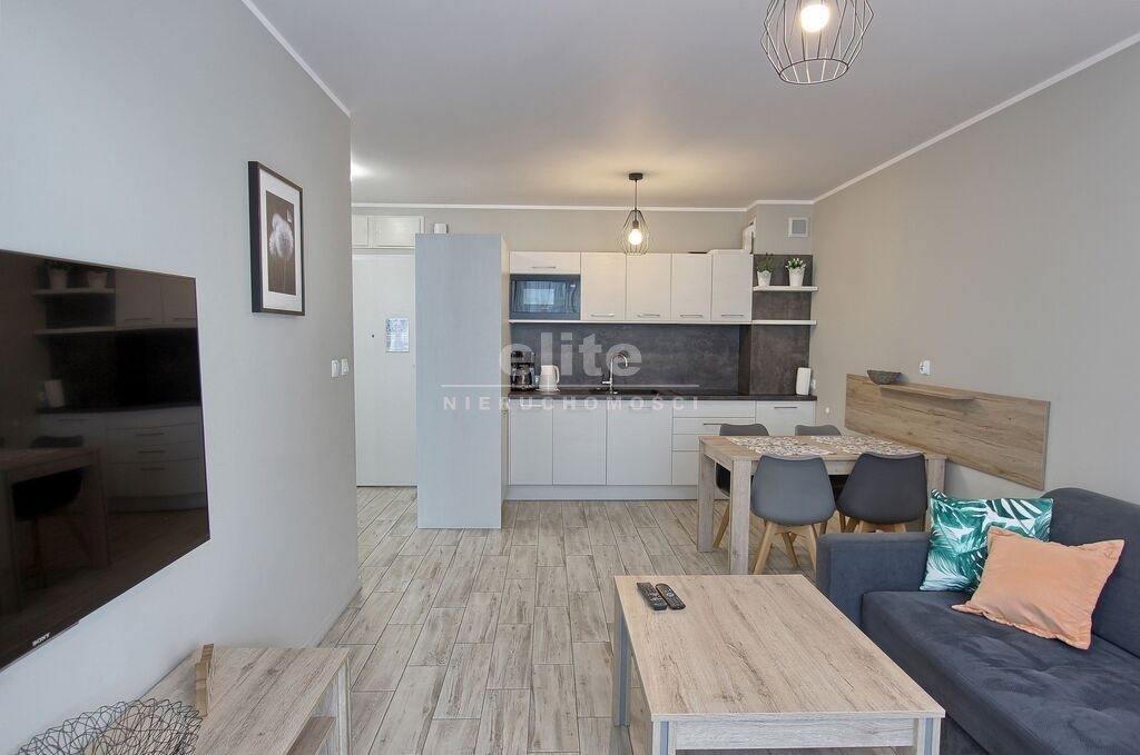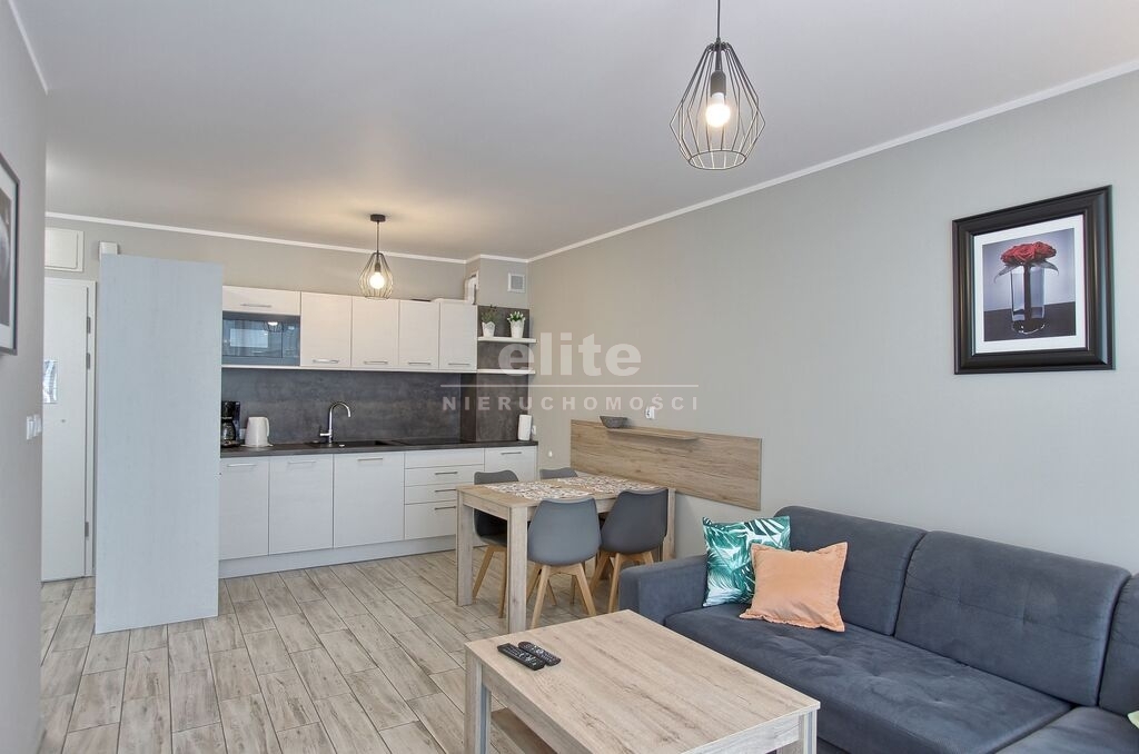 Apartament umeblowany, ładnie i wygodnie urządzony. Powierzchnia to prawie 38 m2. Składa się z salonu z rozkładaną kanapą, w pełni wyposażonego aneksu kuchennego oraz sypialni z łożem małżeńskim i łazienki z prysznicem. Dodatkowym atutem jest taras na który można wyjść z sypialni, jak i z salonu. W budynku znajduje się siłownia, rowerownia, a na dachu taras z leżakami. Teren obiektu jest ogrodzony. Budynek wybudowany przez solidnego kołobrzeskiego dewelopera, dobrze zarządzany. Koszty utrzymania to około 600 zł. Ogrzewanie i ciepła woda z sieci miejskiej.
