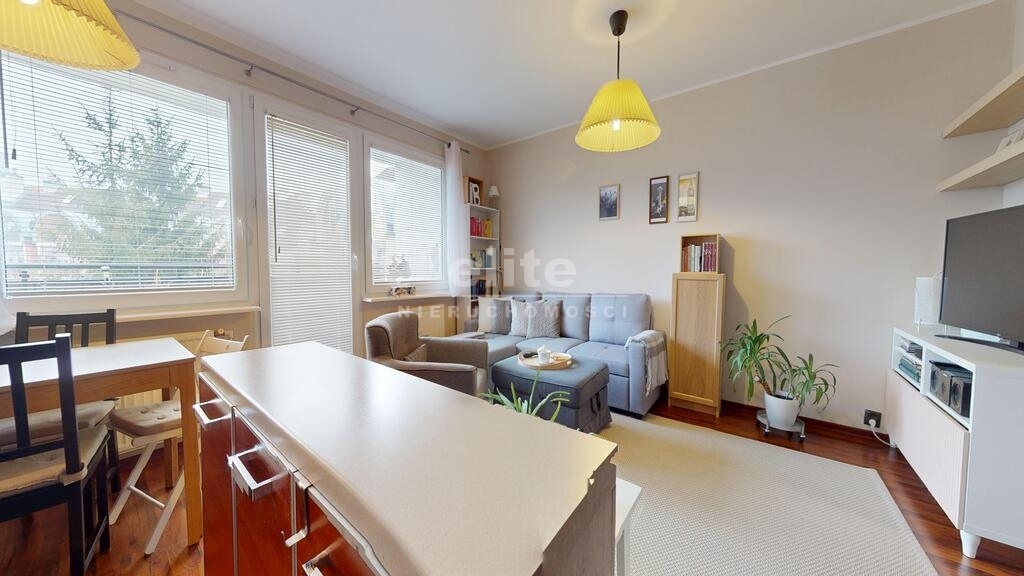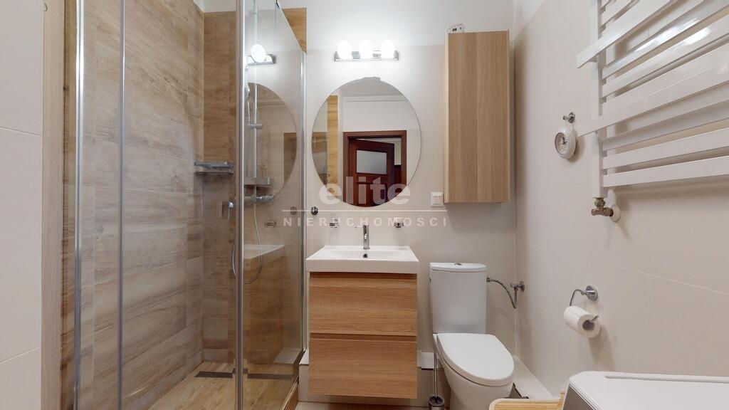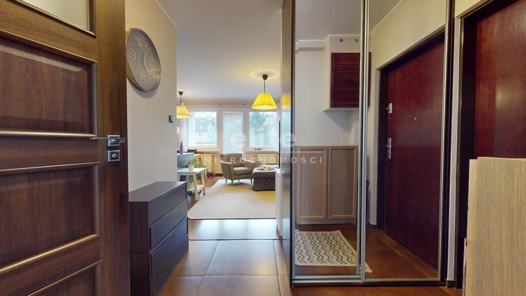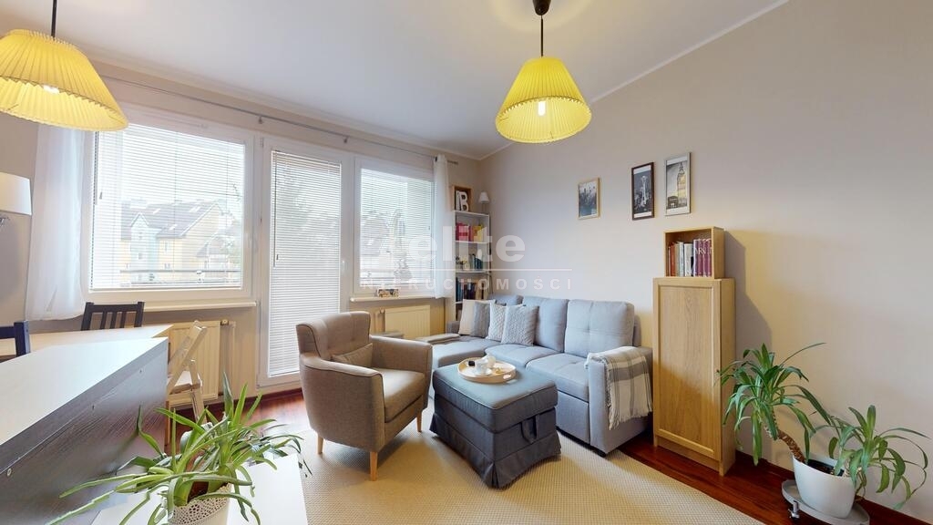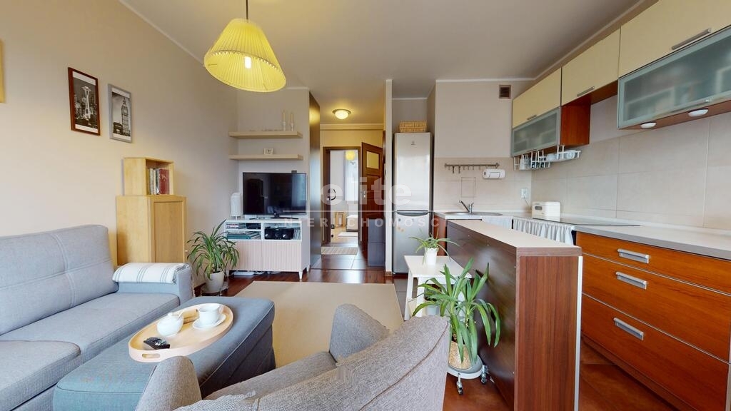 Mieszkanie jest jasne i dobrze nasłonecznione, idealnie położone względem stron świata. Salon z balkonem od strony południowo- zachodniej, sypialnia od wschodu. Lokal zaaranżowany i wykończony ze smakiem. Podłogi w pokojach wyłożone ładnymi panelami a w aneksie kuchennym i korytarzu kaflami. Ściany gładkie malowane. Komfortowa łazienka z prysznicem i miejscem na pralkę, wykończona eleganckimi kaflami. W korytarzu pojemna szafa w zabudowie, drzwi antywłamaniowe, okna PCV. Ogrzewanie i ciepła woda z energooszczędnego pieca gazowego marki Vaillant.