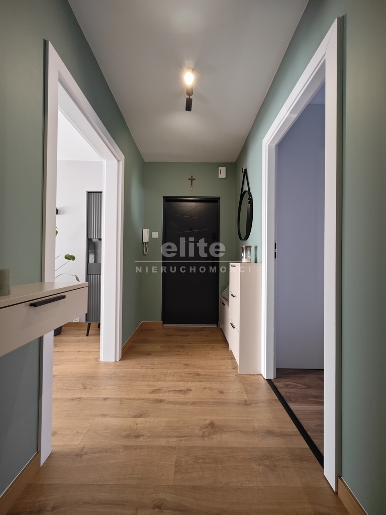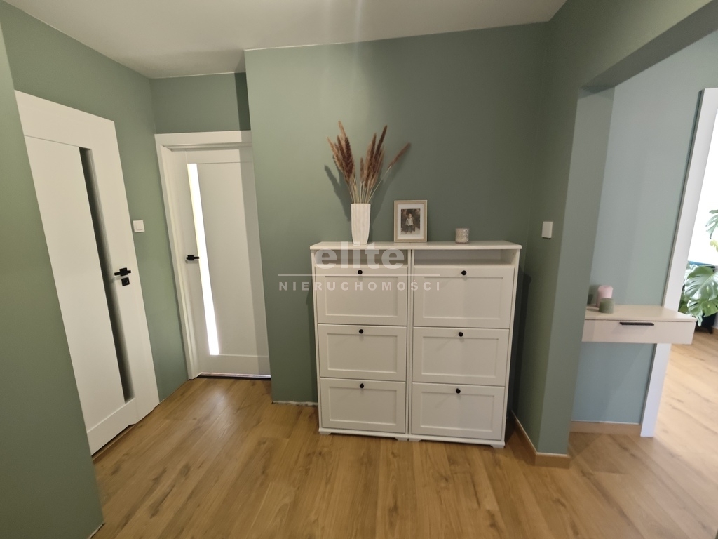 W 2025 roku położono nowe panele w salonie, kuchni i przedpokoju. Ściany w pokojach gładzone i malowane. W kuchni i łazience zostały wymienione instalacje wodno-kanalizacyjna oraz elektryczna (łącznie z podłączeniem w kuchni przewodów do indukcji). W kuchni pozostają nowoczesne meble wykonane na wymiar plus sprzęt AGD, w większości jeszcze na gwarancji (m.in. zmywarka, piekarnik, płyta indukcyjna - wszystko firmy Hisense, lodówka firmy Samsung oraz ozdobny okap). Dodatkowo w kuchni stolik i dwa krzesła oraz jedna ze ścian zabudowana po całości pojemnymi szafkami. W łazience nowoczesna glazura i terakota plus kabina prysznicowa "walk in", umywalka na blacie z szafką z dużymi szufladami, podwieszana muszla, grzejnik drabinkowy oraz zabudowane szafki. W łazience znajduje się również specjalne miejsce na pralkę i suszarkę.